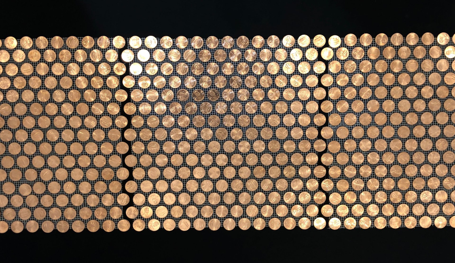 At Indy Penny Tile, we transform ordinary pennies into extraordinary design. Each sheet is hand-crafted in Indianapolis using genuine U.S. coins, carefully arranged and secured to durable fiberglass mesh. Our interlocking sheets are ready to install — saving you time while delivering a one-of-a-kind finish that’s rich with color, texture, and story.