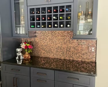 While we love seeing pennies anywhere but our wallets, this use might be our favorite. Turn heads (and raise glasses) with a bar top that shimmers in genuine copper. Forget the messy glue-and-penny method — we’ve done that, and trust us, it’s no fun. Our handcrafted sheets make it simple: just set, grout, and seal to create a durable, conversation-starting centerpiece that guarantees your bar is the best on the block.